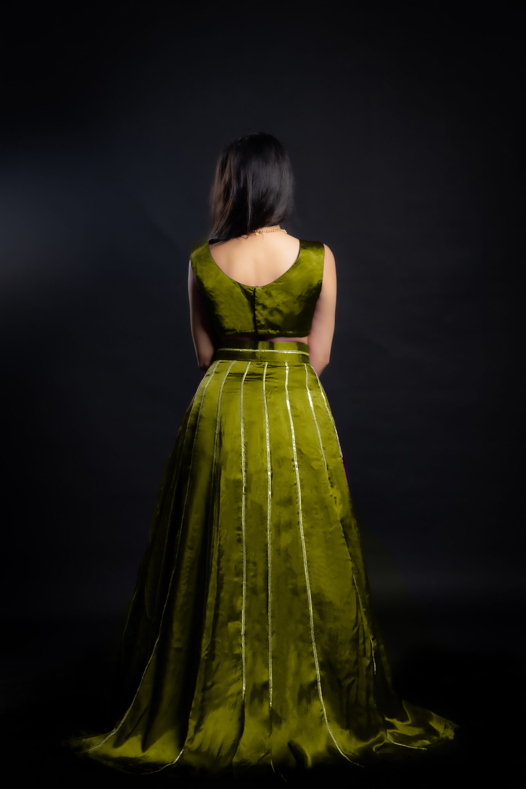 Cupro satin, which is used to make this outfit, is created from cotton linter waste. It serves as a sustainable alternative to polyester.
